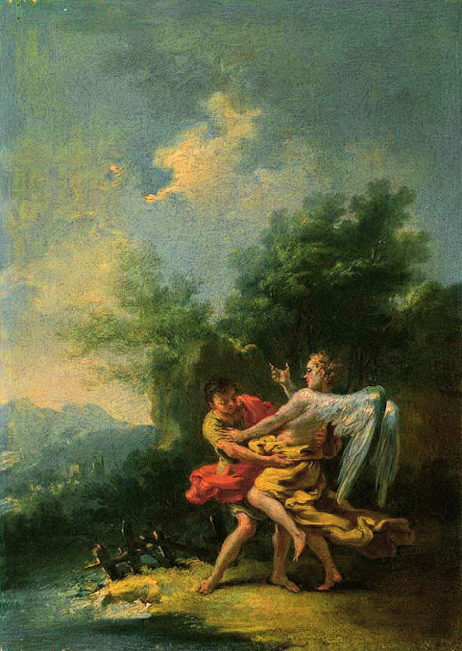 | School of Fontebasso – Jacob Wresting with the Angel (18th cent.); original in the collection emuseum.vassar.edu (CC0 – public domain, color correction). |